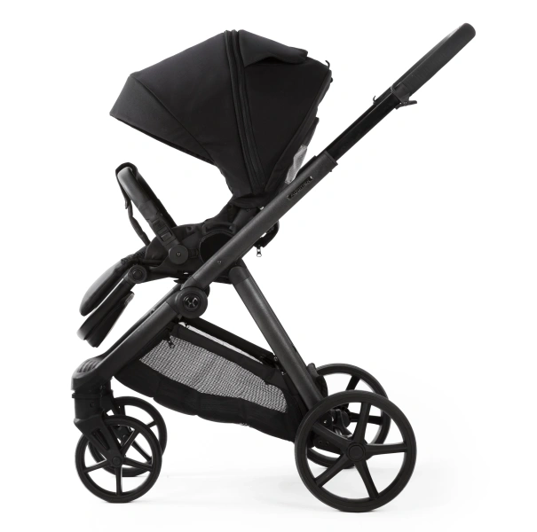 W zestawie znajduje się również nowoczesne siedzisko spacerowe, które możesz zamontować na stelażu w obu kierunkach, a co najważniejsze, możesz je złożyć razem ze stelażem do kompaktowych rozmiarów bez względu na kierunek zamontowania