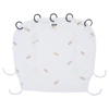 Osłonkę można łatwo zamocować, przesuwając 5 dołączonych pierścieni na daszku wózka/wózka lub uchwycie fotelika samochodowego. Dzięki dodatkowym wiązaniom na dole można łatwo zabezpieczyć osłonkę, chroniąc dziecko przed silnym wiatrem.