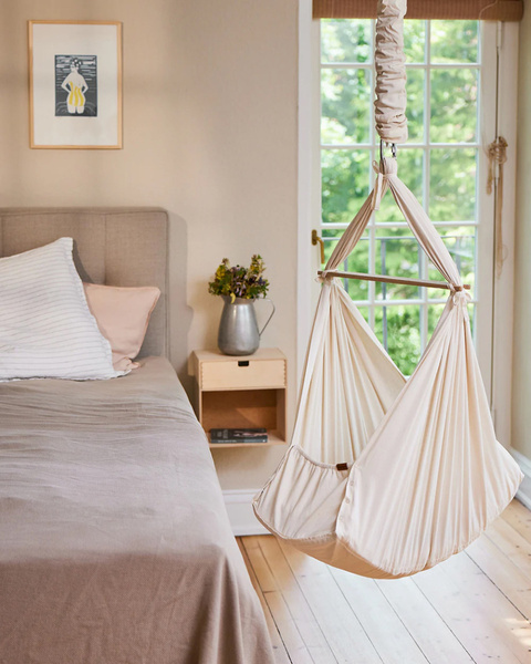 Hamak naśladuje bezpieczne objęcia rodzica i jego delikatne ruchy, dopasowując się do ciała dziecka. Znany również jako „kołyska sprężynowa”, zapewnia maluszkowi poczucie bezpieczeństwa i komfortu. To doskonałe rozwiązanie dla niespokojnych dzieci, które mają tendencję do krótkich drzemek. Dzięki odpowiednim akcesoriom możesz zamontować hamak niemal wszędzie.