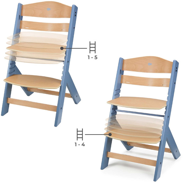 Krzesełko wysokie dla młodszych dzieci ma 3 poziomy regulacji podnóżka. ENOCK w wersji dla starszaków umożliwia regulację na 4 poziomach lub całkowity demontaż podnóżka.