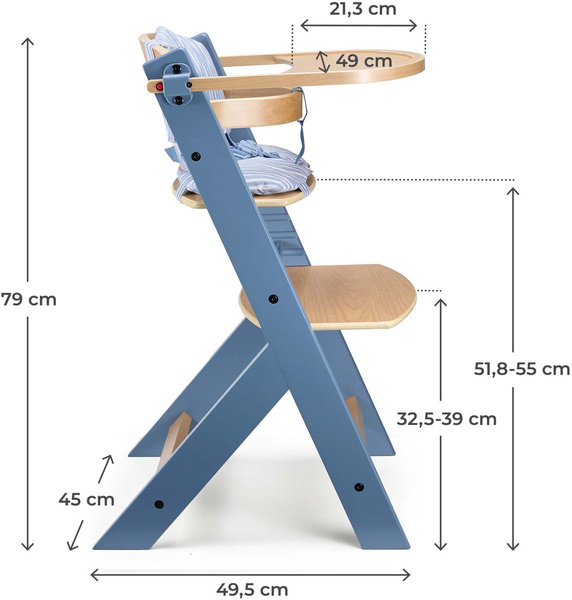 ENOCK to wytrzymałe, wielofunkcyjne krzesełko dla dzieci od 6 miesiąca życia do 10 lat. Będzie towarzyszyć twojemu maluchowi od momentu, w którym zacznie siedzieć, aż do czasu odrabiania szkolnych lekcji. Krzesełko do karmienia 2 w 1 ENOCK wyróżnia się ponadczasową stylistyką oraz szerokim zakresem regulacji, dzięki czemu będzie pasować zarówno do stołu w jadalni, jak i dziecięcego biurka. Solidne wykonanie z litego drewna bukowego gwarantuje trwałość na długie lata. Wygodny system regulacji, uwzględniający kilka poziomów siedziska i podnóżka, zapewnia optymalne dopasowanie do dziecka. Oparcie siedziska ma ergonomiczną formę, a samo siedzisko jest szerokie i głębokie. Zapewnia maluchowi wygodę podczas pierwszych prób samodzielnego jedzenia i później, gdy będzie się bawił przy stole. Drewniana konstrukcja krzesełka jest bardzo stabilna, a dodatkowo łatwa w czyszczeniu.