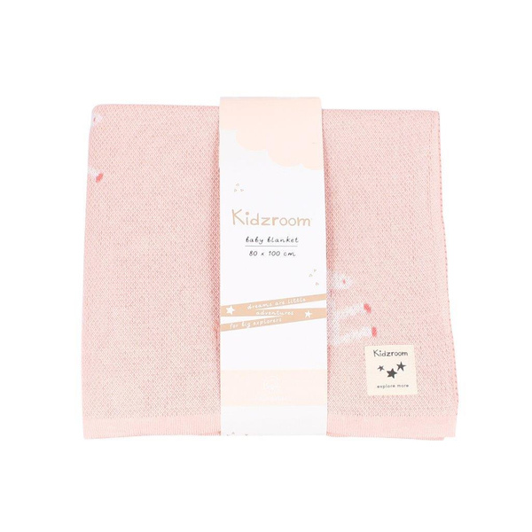 Ten przytulny miękki kocyk marki Kidzroom pochodzi z kolekcji Sweet Snuggies. Kocyk jest idealny do spania lub przytulania, wykonany w 100% bawełny, dzianinowo tkany. Kocyk ma różowy kolor i nadruk pięknego jednorożca Stelli z białymi kropkami w tle. Kocyk ma wymiar 100 cm długości i 80 cm szerokości, jest idealny do stylizacji z kołderką i prześcierałem do kołyski, do łóżeczka i wózka oraz dla nieco starszego maluszka na wycieczkę, podróż autem i wakacje.