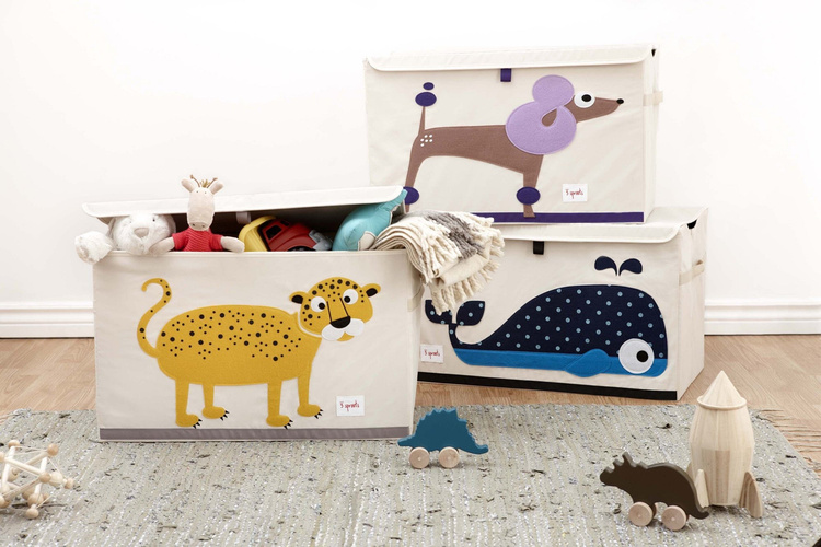 Pudełko zamykane na zabawki to wygodny pojemnik do przechowywania akcesoriów w dziecięcym pokoju. Pojemna skrzynia pomieści wiele dziecięcych gadżetów. Pudełko doskonale sprawdzi się do przechowywania książek, zabawek, a także bielizny czy ubrań sezonowych, a pokrywa pomoże ukryć wszystkie te akcesoria w jego wnętrzu. Boki, pokrywa oraz spód pudełka zostały wzmocnione grubą tekturą, dzięki czemu pudełko na zabawki stabilnie stoi i pięknie się prezentuje nawet gdy jest puste. Pudełko na zabawki z filcowym zwierzakiem nadaje wnętrzu dziecięcego charakteru.