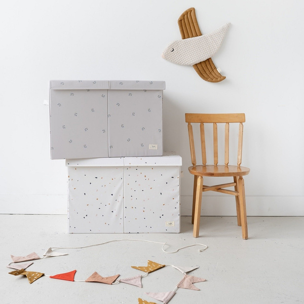 Pudełko zamykane na zabawki to wygodny pojemnik do przechowywania akcesoriów w dziecięcym pokoju. Wyjmowany separator umożliwia stworzenie dwóch przegródek o dowolnej wielkości. Pojemna skrzynia pomieści wiele dziecięcych gadżetów. Pudełko doskonale sprawdzi się do przechowywania książek, zabawek, a także bielizny czy ubrań sezonowych, a pokrywa pomoże ukryć wszystkie te akcesoria w jego wnętrzu. Boki, pokrywa oraz spód pudełka zostały wzmocnione grubą tekturą, dzięki czemu pudełko na zabawki stabilnie stoi i pięknie się prezentuje nawet gdy jest puste.
