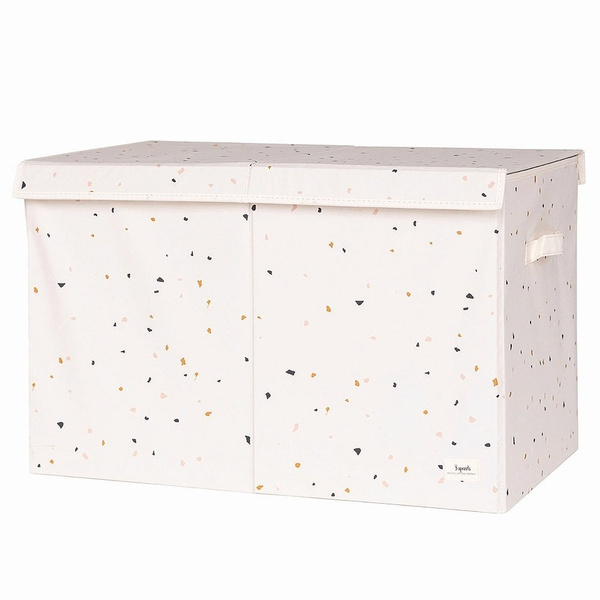 Pudełko zamykane na zabawki to wygodny pojemnik do przechowywania akcesoriów w dziecięcym pokoju. Wyjmowany separator umożliwia stworzenie dwóch przegródek o dowolnej wielkości. Pojemna skrzynia pomieści wiele dziecięcych gadżetów. Pudełko doskonale sprawdzi się do przechowywania książek, zabawek, a także bielizny czy ubrań sezonowych, a pokrywa pomoże ukryć wszystkie te akcesoria w jego wnętrzu. Boki, pokrywa oraz spód pudełka zostały wzmocnione grubą tekturą, dzięki czemu pudełko na zabawki stabilnie stoi i pięknie się prezentuje nawet gdy jest puste.