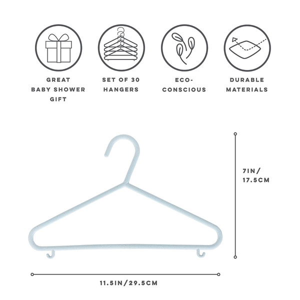 Wieszaki w rozmiarze dopasowanym do dziecięcych i niemowlęcych ubrań pomogą w utrzymaniu porządku w garderobie. Wieszaki posiadają specjalne haczyki po obu stronach, na których możemy zawiesić sukienki i ubranka na cienkich ramiączkach.