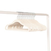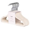 Wieszaki welurowe w rozmiarze dopasowanym do dziecięcych i niemowlęcych ubrań pomogą w utrzymaniu porządku w garderobie. Aksamitne wieszaki są miękkie i przyjemne w dotyku, a ich wykończenie zapobiega zsuwaniu się nawet najmniejszych elementów garderoby. Specjalne wgłębienia umieszczone na bokach wieszaków utrzymują sukienki i ubranka na cienkich ramiączkach na swoim miejscu.