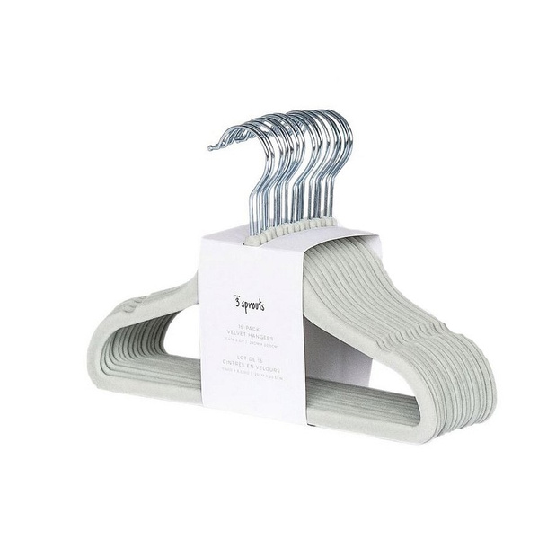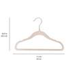 Wieszaki welurowe w rozmiarze dopasowanym do dziecięcych i niemowlęcych ubrań pomogą w utrzymaniu porządku w garderobie. Aksamitne wieszaki są miękkie i przyjemne w dotyku, a ich wykończenie zapobiega zsuwaniu się nawet najmniejszych elementów garderoby. Specjalne wgłębienia umieszczone na bokach wieszaków utrzymują sukienki i ubranka na cienkich ramiączkach na swoim miejscu.