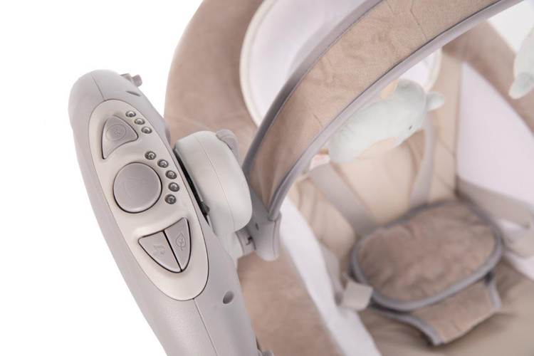 Huśtawka Swing Dolphy jest dedykowana dla dzieci od narodzin do 9 kg i pomoże rodzicom ukołysać maluszka. Wysokiej jakości, pluszowe, miękkie poszycie i zagłówek gwarantują najwyższy poziom komfortu dla dziecka. Huśtawka Swing działa na zasilanie sieciowe lub bateryjne. Ma regulowane oparcie w 2 pozycjach, bezpieczny 5-punktowy pas i elegancką płaską, matową ramę. Łuk z zabawkami jest dopinany. Uwagę zwraca rozbudowany panel z fukcją Timera i 5-cioma prędkościami bujania oraz bogaty zasób 8 różnych melodii i 4 dźwięków natury plus regulacja głośności muzyki. Poszycie z tkaniny można prać w pralce.