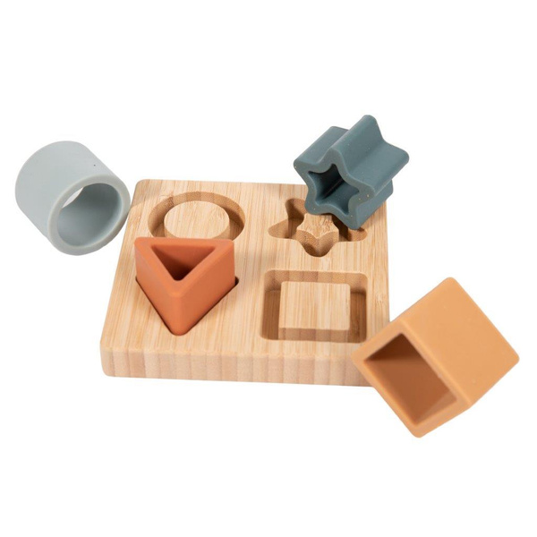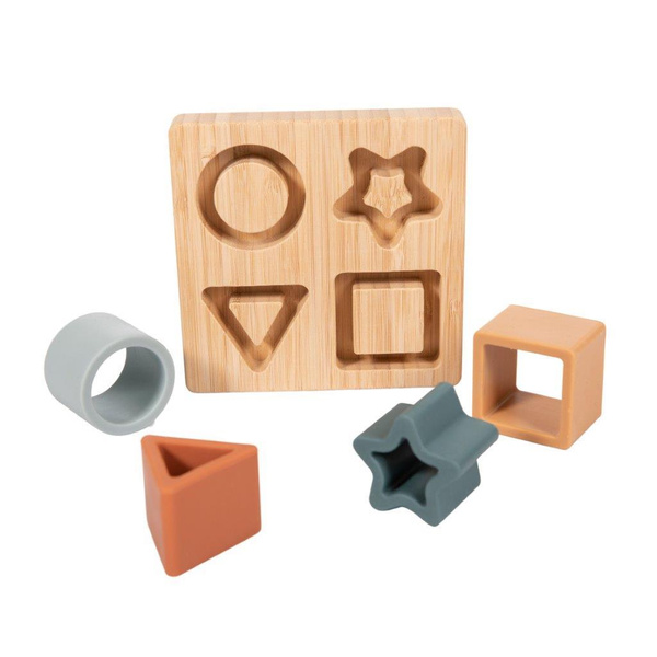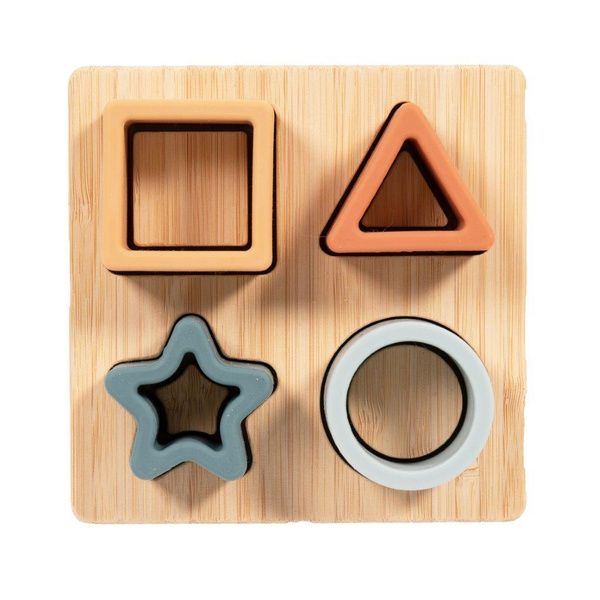 Klasyka na nowo odkryta: sorter kształtów wykonany z silikonu, umieszczony na kwadratowej bazie z bambusa! Produkt trwały, bezpieczny i zdrowy! 4 elementy sortera w pastelowych kolorach są wykonane w 100% z silikonu bez BPA, dzięki czemu są bardzo miękkie w dotyku, trwałe i bezpieczne. To idealna zabawka dla dzieci do wkładania i sortowania różnych kształtów, która jest jednocześnie ćwiczeniem umiejętności koordynacyjnych i motorycznych. Stymuluje zarówno odruch brania, chwytania, zachęca do badania kształtu, wspomaga rozwój motoryki, ćwiczy koordynację ręka-oko oraz wspomaga rozwój sensoryczny maluszka. Silikonowe figury sprawdzają się również jako gryzaki podczas ząbkowania - zapewniając maksymalną ulgę obolałym dziąsłom maluszka. Dla zapewnienia doskonałej higieny silikonowe figury można myć w zmywarce, przed pierwszym użyciem oczyścić wilgotną szmatką i mydłem.