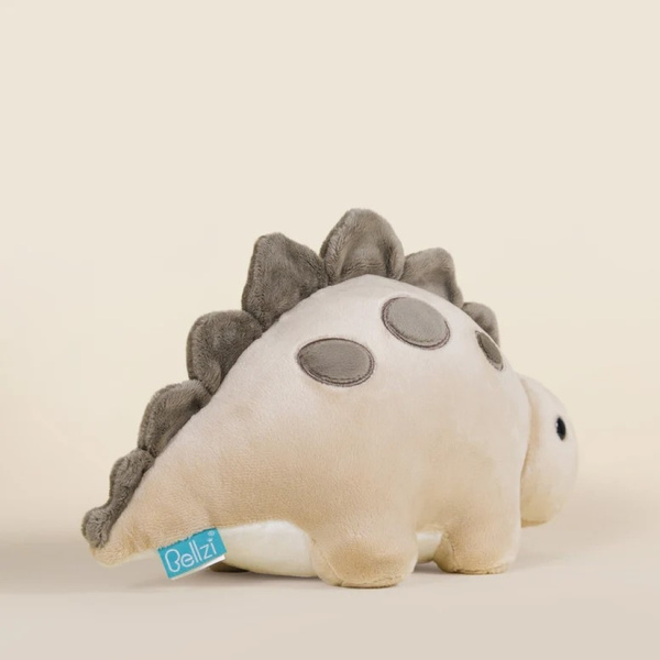 Steggi ma 15 cm wysokości i 30 cm długości. Został starannie wykonany z najwyższej jakości materiałów: ma wyjątkowo miękkie, jasno-brązowe futerko, wolne od alergenów, a także odporne na zbijanie się wypełnienie poliestrowe o wysokiej gęstości, które zapewnia sprężystość i trwałość na lata. Charakterystyczne haftowane logo Bellzi oraz wzmacniane szwy sprawiają, że Steggi jest bezpieczny nawet dla najmłodszych dzieci.
