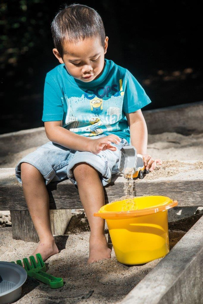 Duży zestaw do piasku składa się z wiaderka z łopatką, grabek i sitka oraz zawiera 2 przeurocze auta FunCars: wywrotkę i koparkę, które gwarantują niesamowitą zabawę! Zestaw zapewnia bogate możliwości zabawy sensorycznej i eksploracji przyrody na plaży lub w piaskownicy, a także wzmacnia m.in. zdolności motoryczne dziecka i koordynację oko-ręka. Zestaw jest wykonany w żywych barwach, należy do linii DANTOY CLASSIC.