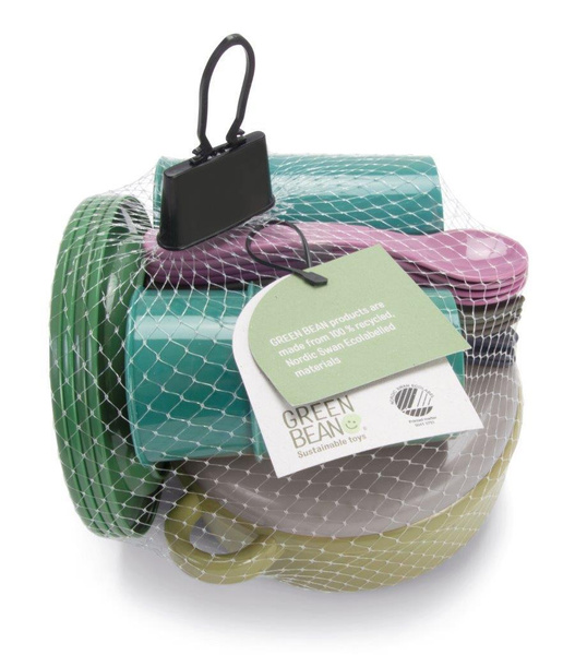 Produkt należy do linii Green Bean Dantoy, w której znajdują się zabawki wykonane w 100% z materiałów pochodzących z recyklingu z oznakowaniem ekologicznym oraz certyfikatem Nordic Swan. Zabawki z tej linii należą do limitowanej edycji, gdyż zostały wykonane z własnych nadwyżek odpadów, które fabryka DANTOY ma na stanie. Sprawia to, że ta seria zabawek jest jeszcze bardziej wyjątkowa. Ze względu na proces recyklingu nie ma dwóch zabawek, które wyglądałyby dokładnie tak samo. Różne odcienie kolorów w tych produktach są tworzone przez losowe mieszanie plastikowych odpadów dostępnych w danym czasie.