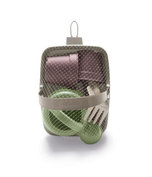 Prawdziwy zestaw małego ogrodnika do zabawy, aby dzieci mogły samodzielnie sadzić rośliny i pomagać dorosłym w pracach związanych z sadzeniem i pielęgnacją. Zestaw zawiera duży kosz na ogrodowe akcesoria, doniczki, łopatę do kopania ziemi,grabki, konewkę do podlewania nowo zasianych roślin i patyczki do roślin, które pomogą zapamiętać, co gdzie zostało zasadzone. Zestaw GREEN GARDEN ma dużą wartość zabawową, ponieważ można go wykorzystać do uprawy roślin, jako szkółkę lub zestaw do zabawy. Do zestawu dołączony jest arkusz z etykietami, na których dziecko może rysować lub pisać.