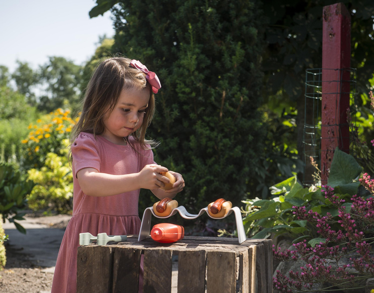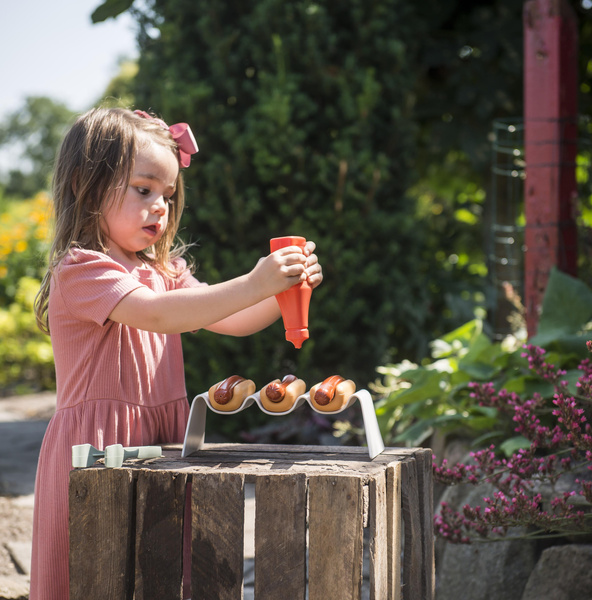 Z tym pięknym zestawem do hot dogów możesz bawić się w sprzedawcę kiełbasek lub grilla i zapraszać rodzinę, lalki i misie do swojego ogrodu na kolację. Wspaniale jest być na zewnątrz i bawić się w ogródku albo przenieść zabawę do domu. Można skompletować kilka zestawów tej serii, które wspierają zabawę na świeżym powietrzu, naukę i odkrywanie. Połącz zestaw do hot dogów z zestawem do grillowania i zaproś jeszcze więcej osób na swoje grillowe przyjęcie. Wszechświat GREEN GARDEN zaprasza do zabawnego zaangażowania się w wiele codziennych obowiązków związanych z pielęgnacją ogródka, a pomiędzy zadaniami powinien oczywiście znaleźć się czas na przerwę w przytulnym zakątku ogrodu - może z hot dogami w ciepłym słońcu.