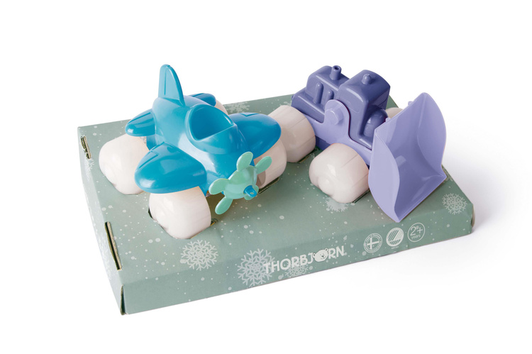 Zestaw zawiera 2 zabawki samolot i pług śnieżny zapakowany w kartonik, które sprawią wiele radości podczas zabawy w domu i na zewnątrz, idealne do zabawy w piaskownicy i we wodzie. Z tym zestawem maluch może dołączyć do misia Thorbjorna podczas inspekcji z powietrza zaśnieżonego miasta Frostby i odśnieżyć je dla przyjaciół, aby ciężarówka z lodem mogła znów przejechać przez miasto. Zestaw zachęca do odgrywania wymyślonych ról i jest odpowiedni zarówno do użytku w pomieszczeniach, jak i na zewnątrz.