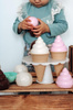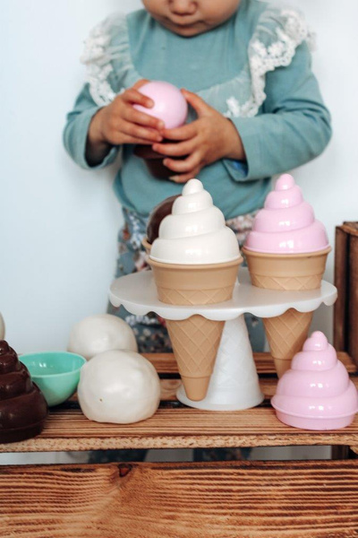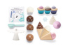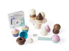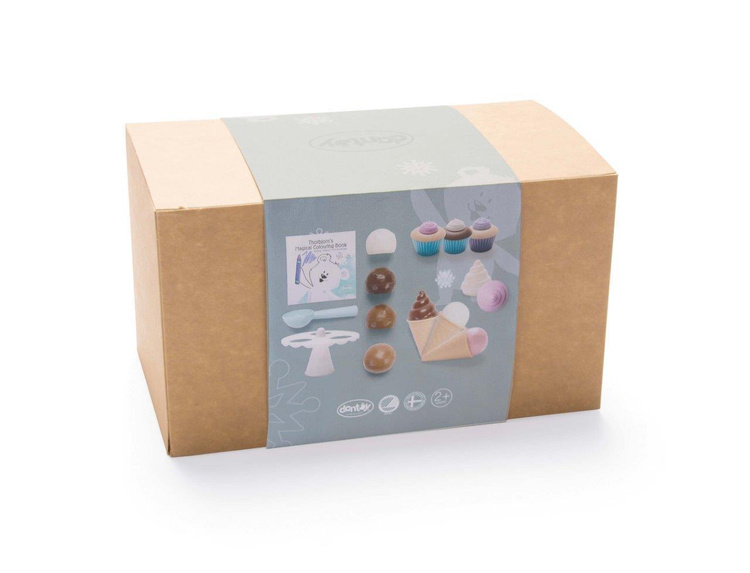 Śliczny zestaw deserowy Thorbjorn zawiera rożki do lodów, gałki do lodów, ciastka i inne pyszne akcesoria do domowych deserów. Dzięki wielu możliwym kombinacjom, na dołączonym stojaku/paterze można atrakcyjnie podawać i pięknie układać wiele różnych rodzajów lodów i ciast. Ten zestaw deserowy nadaje się zarówno do wnętrz, jak i na zewnątrz, na przykład do zabawy w piasku. Do zestawu dołączona jest również piękna kolorowanka, w której miś Thorbjorn i jego przyjaciele z miasteczka Frostby mogą pokolorować swój magiczny świat. Zestaw deserowy z lodami jest zapakowany w elegancki kartonik, zawiera wszystko co potrzeba,aby wyprawić przyjęcie plus lodowy kryształ! W zestawie znajduje się książeczka kolorowanka o misiu Thorbjorn i zagubionym krysztale lodu. Można bawić się w lodziarnię, cukiernię - pomysłów jest wiele! Zabawki Thorbjorn pobudzają drobne umiejętności motoryczne, zmysł równowagi i wyobraźnię dziecka.
