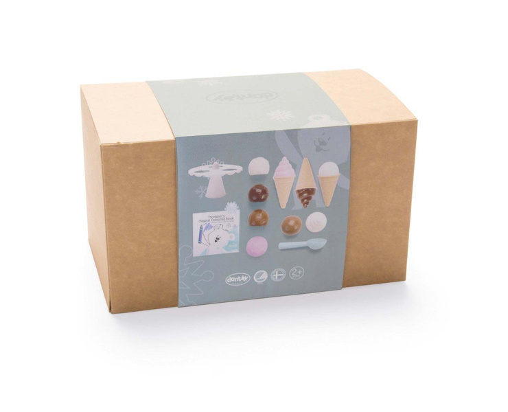 Śliczny zestaw do lodów Thorbjorn zawiera rożki, wafelki do lodów, które można atrakcyjnie podawać na dołączonym stojaku/paterze i pięknie układać kilka różnych rodzajów lodów. Ten zestaw nadaje się zarówno do wnętrz, jak i na zewnątrz, na przykład do zabawy w piasku. Do zestawu dołączona jest również piękna kolorowanka, w której miś Thorbjorn i jego przyjaciele z miasteczka Frostby mogą pokolorować swój magiczny świat. Zestaw do lodów jest zapakowany w elegancki kartonik, zawiera wszystko co potrzeba, aby wyprawić przyjęcie plus lodowy kryształ! Można bawić się w lodziarnię, cukiernię - pomysłów jest wiele! Zabawki Thorbjorn pobudzają drobne umiejętności motoryczne, zmysł równowagi i wyobraźnię dziecka.