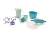 Zestaw do pieczenia i herbaty w odcieniach mroźnego błękitu zapakowany w elegancki kartonik, zawiera dzbanek do kawy, 2 kubeczki z talerzykami, miskę, wałek do ciasta i 3 urocze foremki. Po zakończeniu pieczenia nadszedł czas na ciasto - prawdziwe ciasto, modelinę lub piasek. Dzięki 3 foremkom dziecko może tworzyć ciasteczka w najpiękniejszych kształtach, które sprawią, że będzie ono po prostu głodne. Oprócz ciasteczkowego głodu, pragnienie można ugasić łykiem lemoniady, co również jest możliwe dzięki pozostałym akcesoriom z zestawu do pieczenia. Teraz wspólna zabawa będzie niesamowita zzaangażowaniem rodziców, rodzeństwa lub lalek do wspólnego pieczenia ciastek i picia kawy i lemoniady!