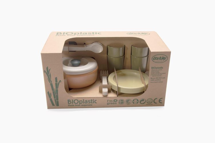 Zestaw obiadowy BIO jest produkowany w Danii z BIOplastiku wykonanego z trzciny cukrowej, która w 100% jest zrównoważonym surowcem, dzięki czemu posiada certyfikat Nordic Swan Ecolabel. Zabawki te są przyjazne dla środowiska i nie zawierają szkodliwych chemikaliów. Nasze pudełka do zabawek z linii BIO wykonane są z tektury z recyklingu.