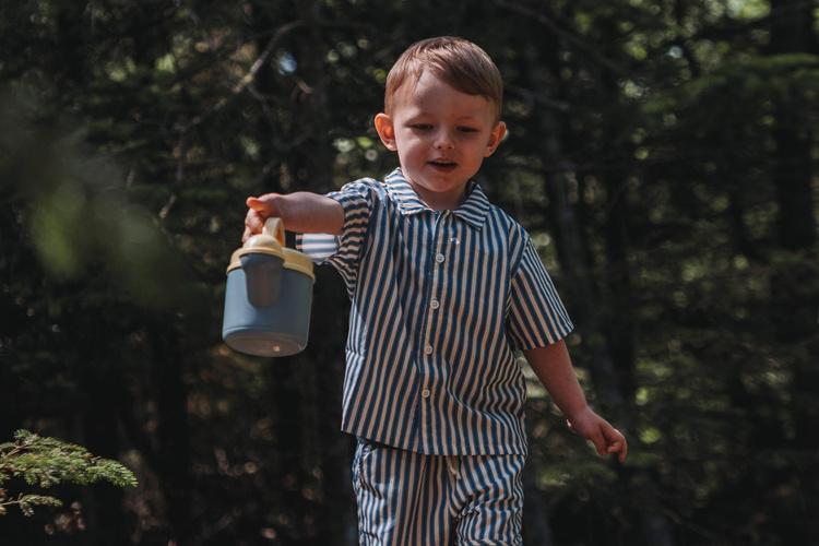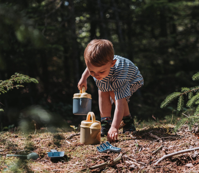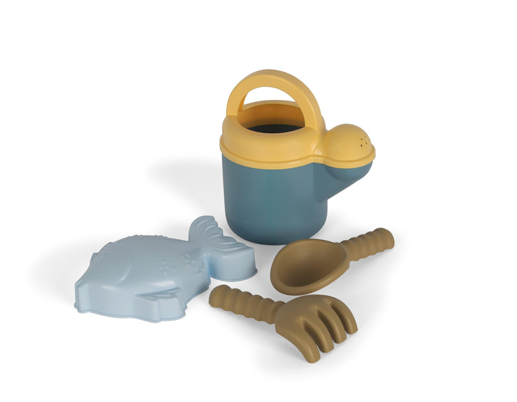 Uroczy zestaw z konewką/dzbankiem na wodę, foremką do piasku, łopatką i grabkami. Zestaw jest idealny do zabawy i nauki na plaży lub w piaskownicy, dla młodszych i starszych. Zabawa z piaskiem i wodą wzmacnia eksplorację sensoryczną dziecka, a także drobną motorykę, na przykład podczas napełniania i obracania foremki do piasku. Zestaw jest w stonowanych, naturalnych kolorach i gwarantuje godziny zabawy malucha i zapewnia wiele okazji do sensorycznej eksploracji na świeżym powietrzu za pomocą piasku i wody, stymuląc zdolności motoryczne i zmysły dziecka.