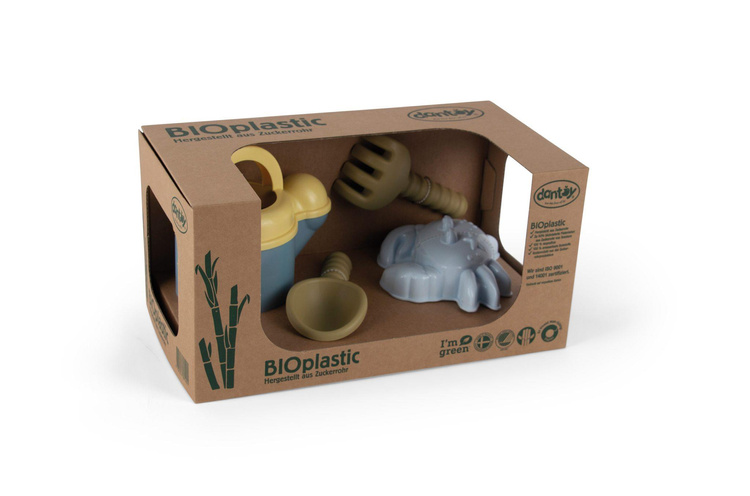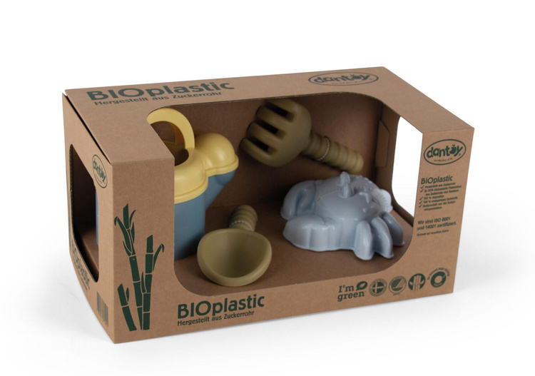 Zestaw do piasku BIO jest produkowany w Danii z BIOplastiku wykonanego z trzciny cukrowej, która w 100% jest zrównoważonym surowcem, dzięki czemu posiada certyfikat Nordic Swan Ecolabel. Zabawki te są przyjazne dla środowiska i nie zawierają szkodliwych chemikaliów. Nasze pudełka do zabawek z linii BIO wykonane są z tektury z recyklingu.