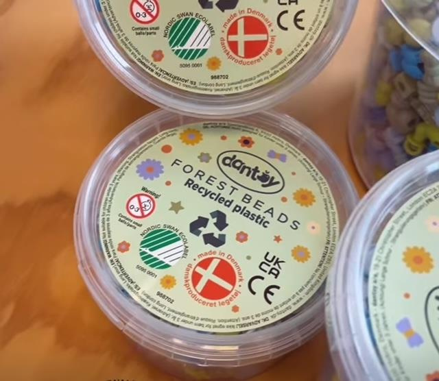 •Bezpieczne materiały: Koraliki są wyprodukowane w Danii z plastiku z recyklingu, z nietoksycznych i odpornych na uszkodzenia materiałów, co zapewnia bezpieczną zabawę dla dzieci. Koraliki są EKO!