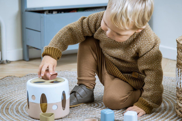 Sorter kształtów pobudza zdolności motoryczne dziecka i uczy koncentracji i koordynacji ręka-oko. Każde dziecko uwielbia wkładać i wykładać przedmioty, aby zrozumieć ich kształty i właściwości. Małe klocki w kształcie figur geometrycznych (kwadrat, koło, trójkąt) należy umieścić we właściwych otworach tak, aby wpadły do sortera. Taka zabawa to wyzwanie, które budzi kreatywność dziecka. Sorter jest produkowany w Danii z bioplastiku wykonanego z trzciny cukrowej, która w 100% jest zrównoważonym surowcem. To sprawia, że posiada certyfikat Nordic SwanEcolabel. Produkty te są przyjazne dla środowiska i nie zawierają szkodliwych chemikaliów. Opakowania wykonane są z tektury z recyklingu.