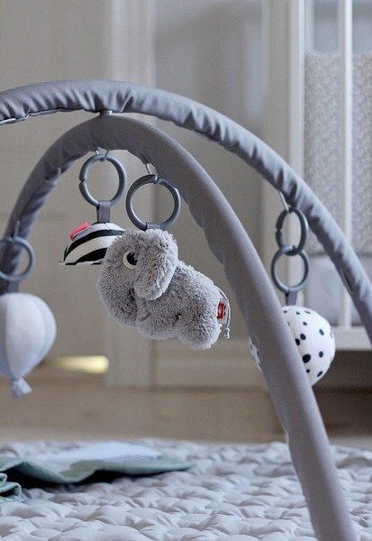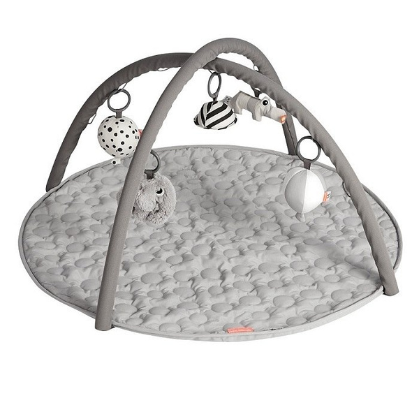Mata wykonana z gładkiego i przytulnego, pikowanego materiału będzie pierwszym placem zabaw dla dziecka. Mata została wyposażona w pięć interaktywnych zwierzątek, pobudzających wyobraźnie oraz zmysł słuchu i wzroku. Zwierzątka można umieszczać na pałąkach w 13 różnych miejscach. Miękka mata edukacyjna z atrakcjami dla maluszka sprawia, że dziecko z zainteresowaniem podnosi główkę i wyciąga rączki do kolorowych elementów. Po odpięciu akcesorii mogą one służyć jako zabawki. Łuki mocowane są do maty na rzepy, łatwe do usunięcia. Podczas zabawy dziecko będzie czuć się komfortowo i bezpiecznie.