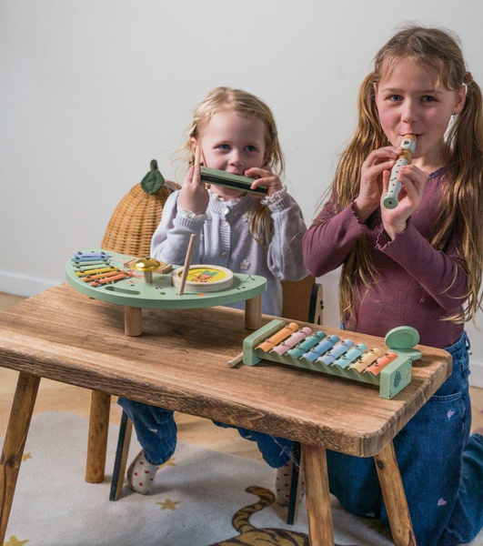 Zestaw jest idealny dla maluchów, które chcą wcielić się w muzyków i organizować małe koncerty w domu. Dzięki wysokiej jakości materiałom, zabawka jest trwała i bezpieczna dla dzieci, a jej estetyczny, drewniany design sprawia, że jest przyjemna dla oka.