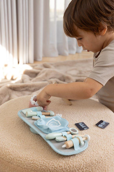 Rozwój wyobraźni i empatii – maluch wciela się w rolę lekarza, ćwicząc komunikację i troskę o innych.