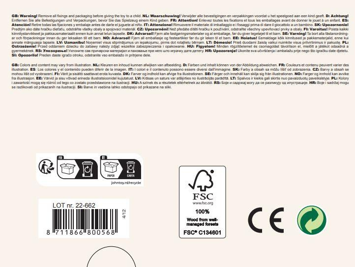 Zabawka wykonana z certyfikowanego drewna wysokiej jakości, pokryta nietoksyczną farbą.