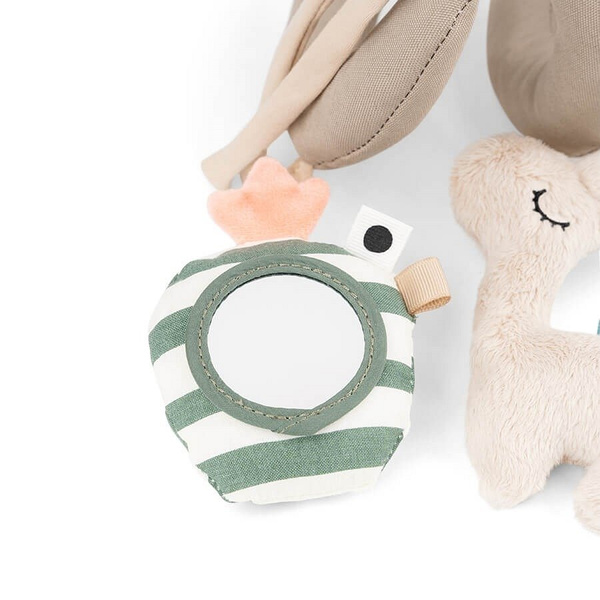 Zawieszka do wózka, łóżeczka oraz fotelika samochodowego została wykonana z miękkich i przyjemnych w dotyku materiałów. Delikatne kolory oraz urocze zwierzątka przyczepione do spirali z pewnością zainteresują maluszka, przyciągając jego uwagę. Każdy z elementów spirali posiada inną funkcję: miękka pluszowa lama Lalee będzie cieszyć przyjemnym, szeleszczącym dźwiękiem, kaktus posiada liczne metki, a lusterko jest idealne dla ciekawskich oczu maluszka. Miękka i przyjemna w dotyku lama Lalee to doskonała zabawka do przytulania i trzymania w małej rączce.