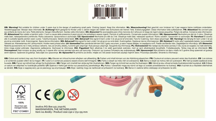 Zabawka wykonana z certyfikowanego drewna wysokiej jakości, w pełni bezpieczna, pokryta nietoksyczną farbą.