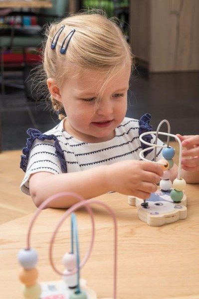 Drewniany labirynt-przeplatanka marki JOUECO to ponadczasowa zabawka edukacyjna! Ten piękny pastelowy labirynt został wykonany z wysokiej jakości drewna i metalu, posiada dwie kolorowe, zaplątane osie, na których znajdują się po cztery pastelowe koraliki. Dodatkowym atutem tej zabawki jest jego drewniana baza w kształcie i z wizerunkiem jednego z 4 zwierzaków z The Wildies Family: