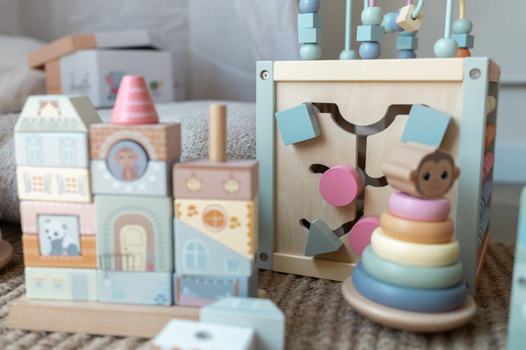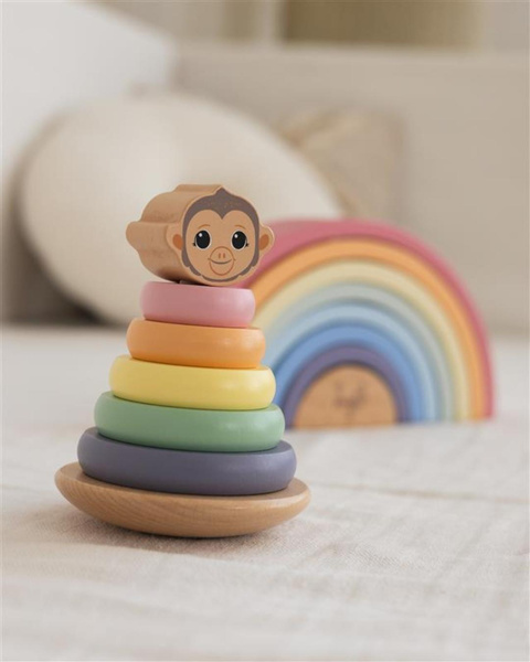 Ta piękna pastelowa wieża The Wildies Family 7 elementów - zapewni dziecku rozrywkę na długie godziny i rozwinie koordynację wzrokowo-ruchową. Twoje dziecko będzie w ten sposób poznawać różne rozmiary i dowie się w jakiej kolejności powinny być one ułożone.