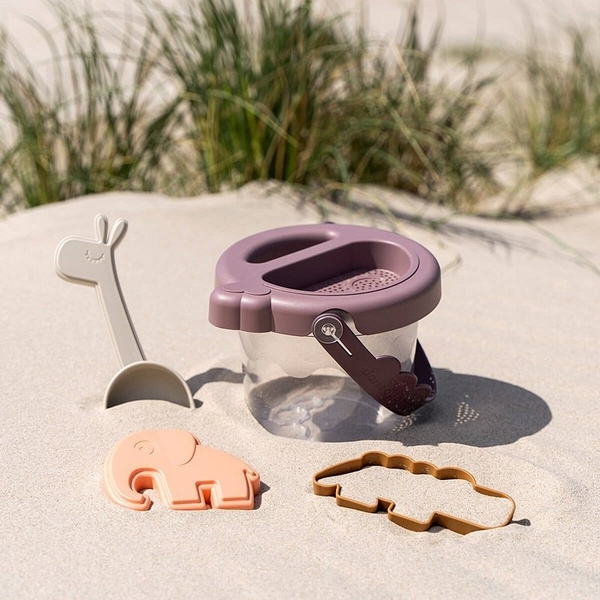 Wiaderko ma zabawną pokrywkę w kształcie wieloryba Walliego z uchwytem, który jest jednocześnie sitkiem – świetnie nadaje się do wyszukiwania skarbów w piasku. Idealny zestaw do zabawy w piasku dla wszystkich maluchów z formą krokodyla i słonia oraz łopatą lamą - wszystko w przyjemnej kolorystyce. Idealnie nadaje się do robienia piaskowych figurek i noszenia wody.