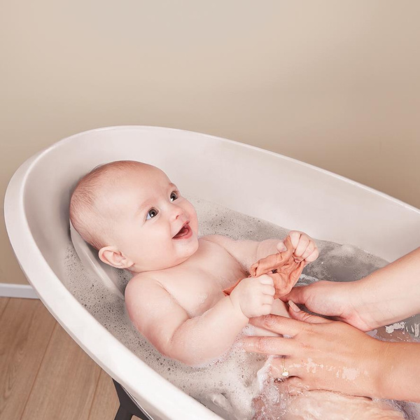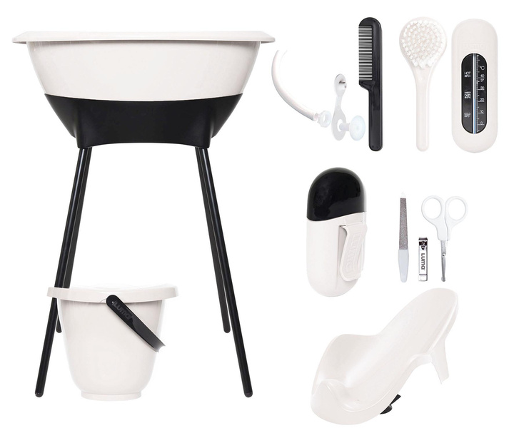 Nowoczesna konstrukcja wanienki - stojak gwarantuje dodatkowy komfort podczas kąpieli, a akcesria dodatkowe są nieodzownym elementen wyprawki.