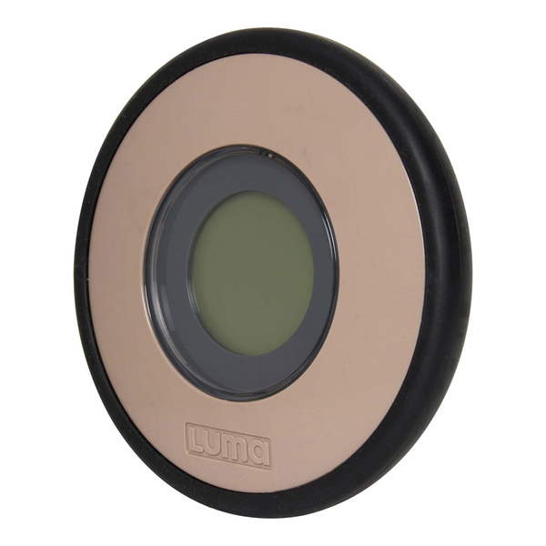 Cyfrowy termometr do kąpieli LUMA aktywuje się automatycznie, gdy tylko wejdzie w kontakt z wodą i unosi się, dzięki czemu można prawidłowo widzieć wyświetlacz.