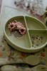 Talerzyk charakteryzuje się miękką i przyjemną w dotyku teksturą, a jego elastyczna, trwała konstrukcja jest odporna na uderzenia i codzienne dziecięce testy. Stabilna podstawa ssąca mocno trzyma się stołu, zapobiegając przesuwaniu się lub upadkowi naczynia – mniej bałaganu i więcej spokoju dla rodzica.