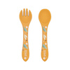 Wygodne i poręczne sztućce w kolorze beżowym z printem, który ozdabia rączki łyżki i widelca, oraz pasuje do kolekcji z leniwcem tej marki, zachęca dziecko do sięgania po kolejne kęsy i zamienia posiłek w radosną przygodę.