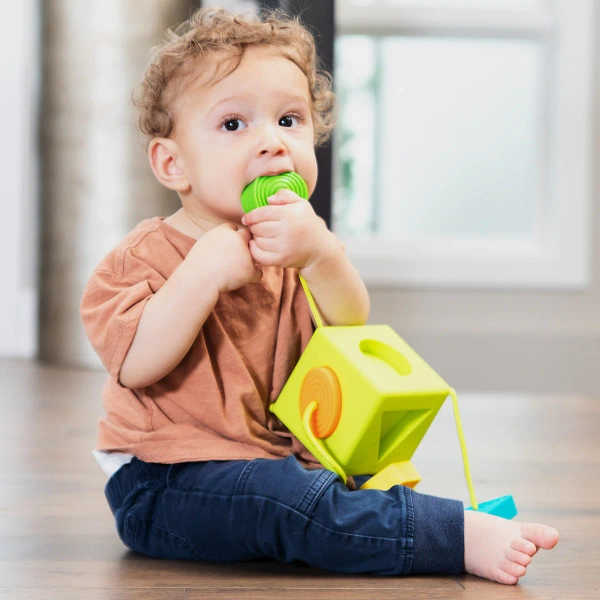 OombeeCube to nie tylko zabawka, ale także narzędzie wspierające wszechstronny rozwój malucha – bezpieczna, edukacyjna i pełna frajdy! Zabawka oferuje doskonałą zabawę i naukę zarówno w domu, jak i w podróży. Sorter Kostka OombeeCube zachwyci każdego małego odkrywcę, dzięki żywym kolorom, miękkim silikonowym kształtom i różnorodnym fakturom, pobudza zmysły dziecka. Maluch może badać elementy, ściskać je, a nawet bezpiecznie wkładać do buzi. Nauka kształtów staje się intuicyjna i przyjemna, gdy dziecko dopasowuje kwadrat do kwadratu, koło do koła czy trójkąt do trójkąta – każdy element znajdzie swoje miejsce.