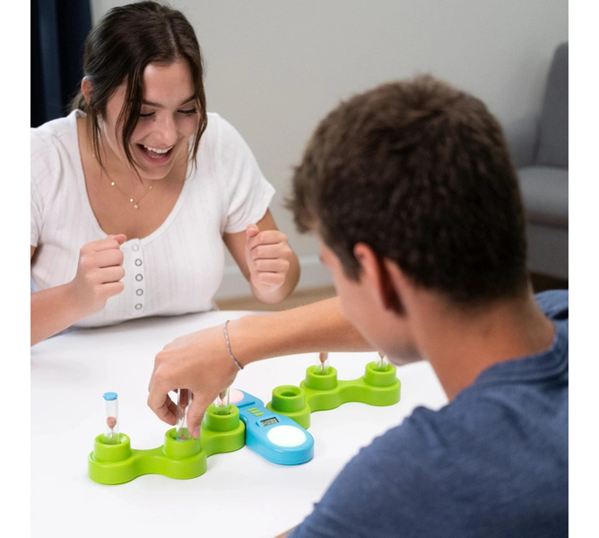 W tej dynamicznej grze liczy się refleks, koncentracja i spryt. Pięć klepsydr o różnym czasie przesypywania piasku, to Twoje wyzwanie. Musisz utrzymać piasek w ciągłym ruchu, obracając klepsydry i zmieniając ich położenie na Podstawkach. Czy potrafisz działać na tyle szybko, by wyprzedzić swojego przeciwnika?