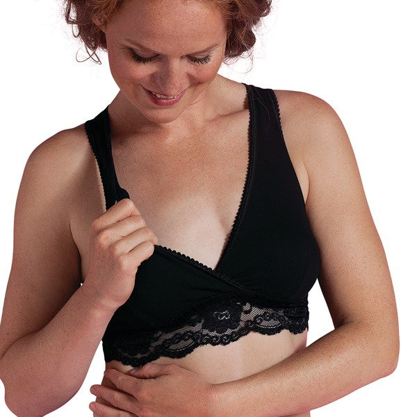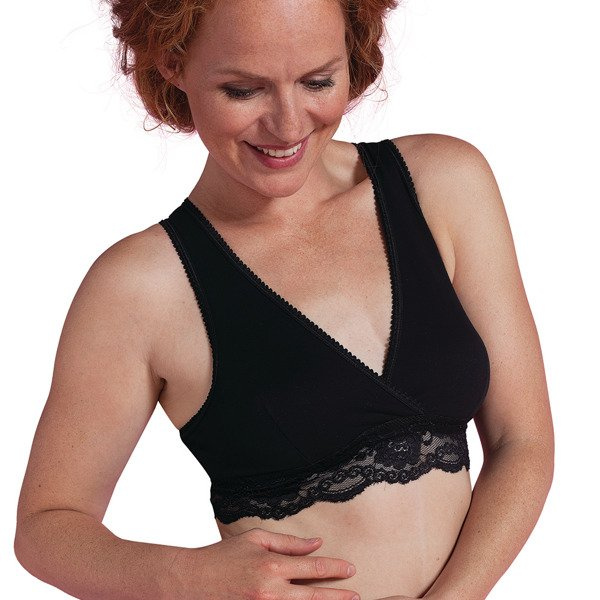 Bezszwowy biustonosz do karmienia z bawełny organicznej z koronką od Carriwell idealnie sprawdzi się w okresie ciąży oraz karmienia piersią.