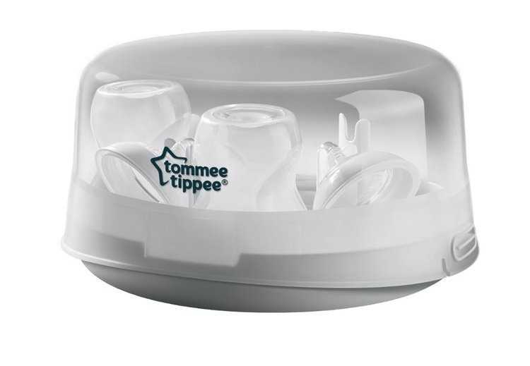 Oszczędność czasu: Dzięki szybkiemu cyklowi sterylizacji trwającemu zaledwie 4 minuty, mikrofalowy sterylizator parowy Microsteri firmy Tommee Tippee zapewnia sterylne butelki na czas przed następnym karmieniem dziecka.