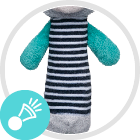 Jest lekka i poręczna, dzięki czemu łatwo utrzymać ją w małych dziecięcych rączkach. Posiada interaktywne elementy zachęcające dziecko do zabawy. Zabawka posiada gryzaczek, a dodatkowo po ściśnięciu wydaje ciekawy dźwięk.