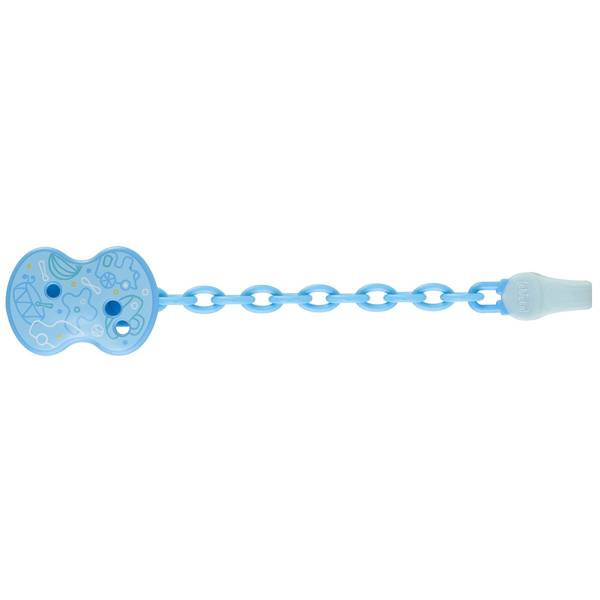 Łańcuszek do smoczka z klipsem oraz miękkim zaczepem jest łatwy do zapięcia na odzieży. Chroni smoczek przed zaginięciem, upadkiem na podłogę i zabrudzeniem. Można go sterylizować zarówno na zimno, jak i na gorąco.