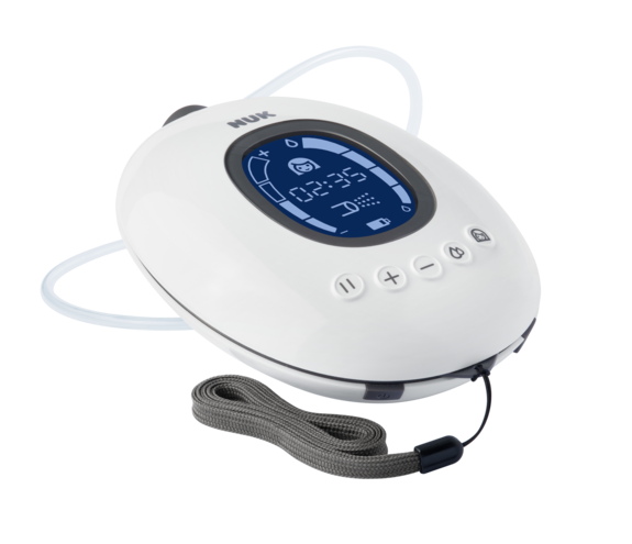 Elektryczny odciągacz NUK Nature Sense jest wyposażony w innowacyjny wyświetlacz LCD, na którym można bezpośrednio na ekranie sprawdzić proces odciągania, czas odciągania i aktualny stan naładowania baterii. Wyświetlacz automatycznie dostosowuje się do warunków oświetleniowych otoczenia, dzięki czemu można z niego korzystać zarówno w dzień, jak i w nocy. Wyświetlacz LCD jest również bardzo łatwy w obsłudze dzięki przyciskom dotykowym. Laktator jest idealny w podróży: wbudowany akumulator po naładowaniu wystarcza na 3 sesje odciągania (po 30 minut każda). Jeśli bateria jest wyczerpana, laktator może być również używany z dołączonym zasilaczem sieciowym lub z zewnętrznym zasilaczem typu powerbank. Ponadto praktyczny pasek zapewnia jeszcze większą mobilność, ponieważ laktator można łatwo przenosić.