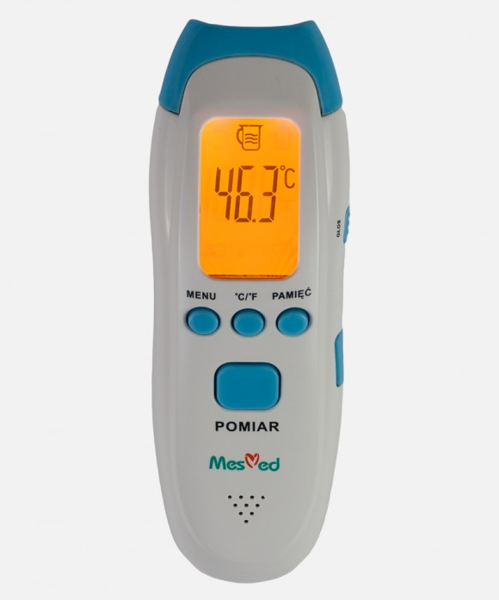 Bezdotykowy pomiar eliminuje możliwość przenoszenia drobnoustrojów, dając gwarancję bezpieczeństwa i higieny. Błyskawiczny odczyt umożliwia kontrolę temperatury u najbardziej ruchliwego dziecka. Termometr lekarski MesMed wyposażony jest w kolorowy wyświetlacz, który dzięki nowoczesnej technologii, sam interpretuje wynik pomiaru i podświetla się na odpowiedni kolor.