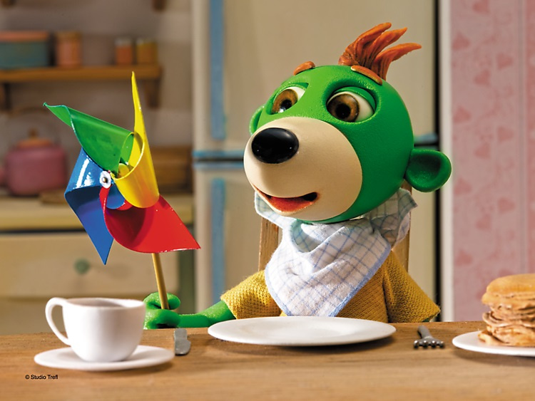 Wielobarwna układanka z motywem przewodnim z bajki Rodzina Treflików.